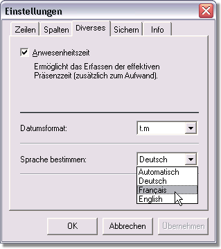 effektive Präsenzzeit festhalten wollen, aktivieren Sie dazu die